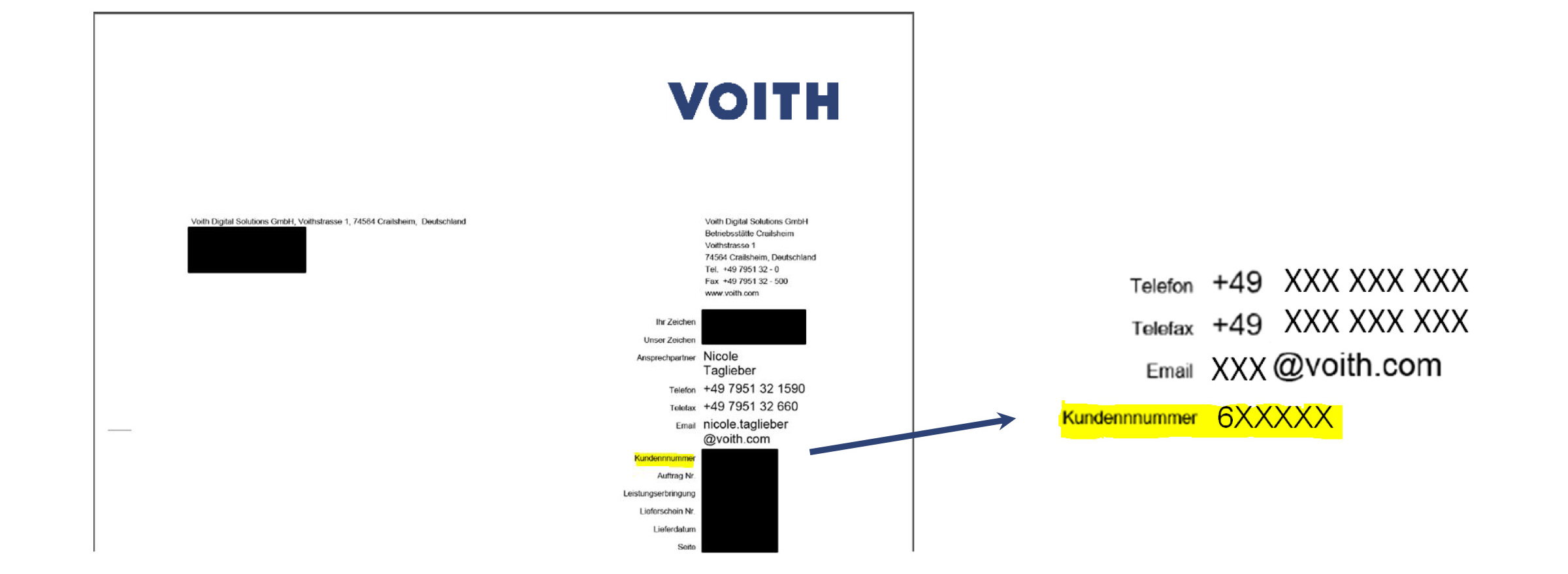 So finden Sie Ihre Kundennummer auf einer Voith Rechnung